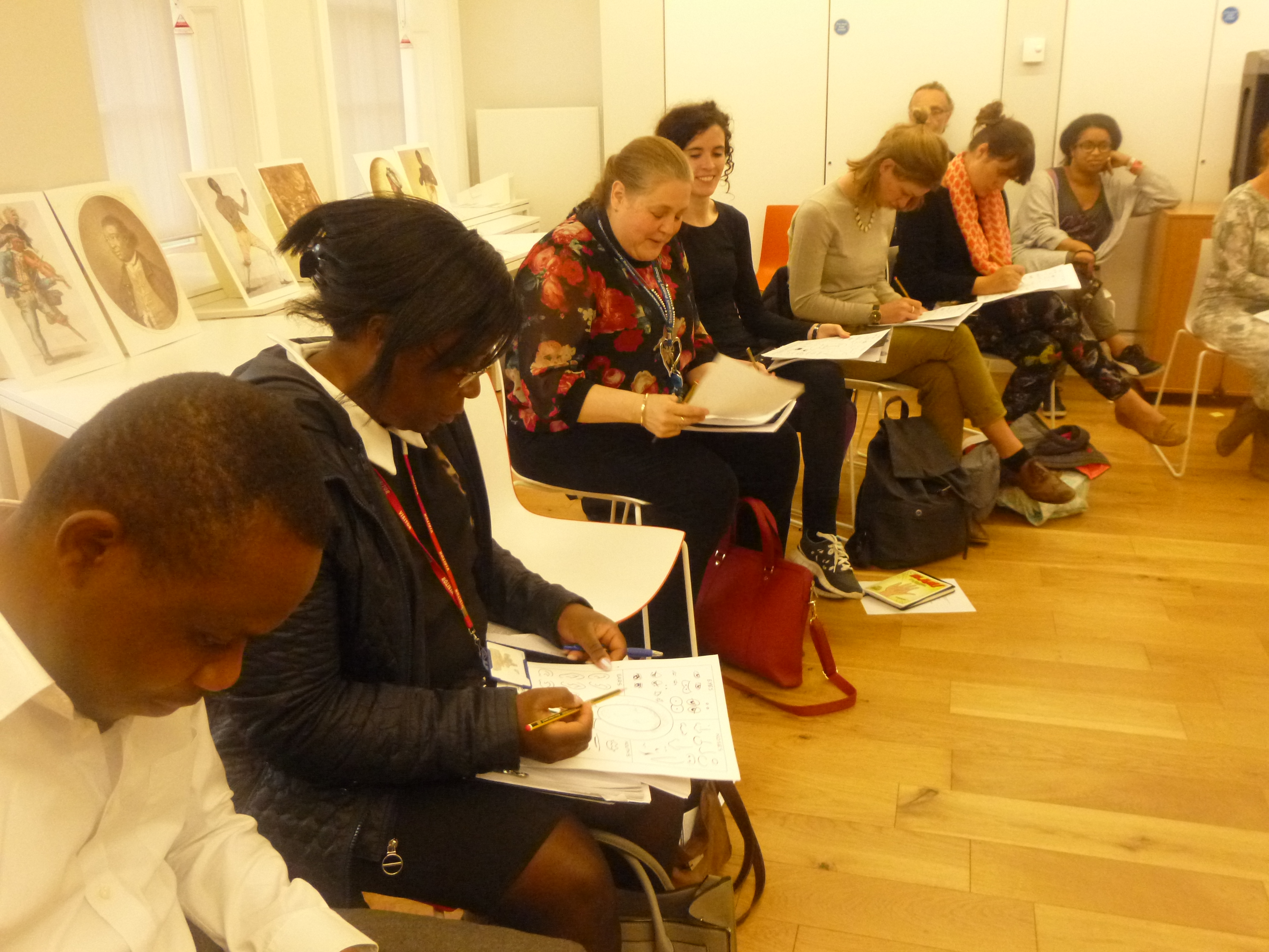 Last night teachers taking part in the Black Georgians project got the first glimpse of the exhibition at Black Cultural Archives which is the inspiration of the project with year 5 classes. This project has been generously funded by Clore Literature and Poetry Awards and Ernest Cook Trust. There were about 15,000 black people in UK in Georgian times, across all levels of society. The exhibition shows what we know of some of them – fragments of information from which we can start up investigations into their lives. Our project will include visits to the exhibition, poetry and creative writing workshops, cartoon drawing workshops and a final display of work in December. Teachers last night had a go at cartoon drawing with cartoonist Steve Marchant, and were shown some of the Georgian history on our doorstep in Clapham where 18 black boys and 4 black girls from Sierra Leone were educated at the African Academy. Their stories capture some of the diverse stories of black Georgians of the time – some sons of princes, some sons and daughters of emancipated slaves, some of families in Sierra Leone that sold others to the slave trade. This is a year 5 project that runs from now until December. The exhibition is on a Black Cultural Archives in Windrush Square until next year and is well worth a visit.